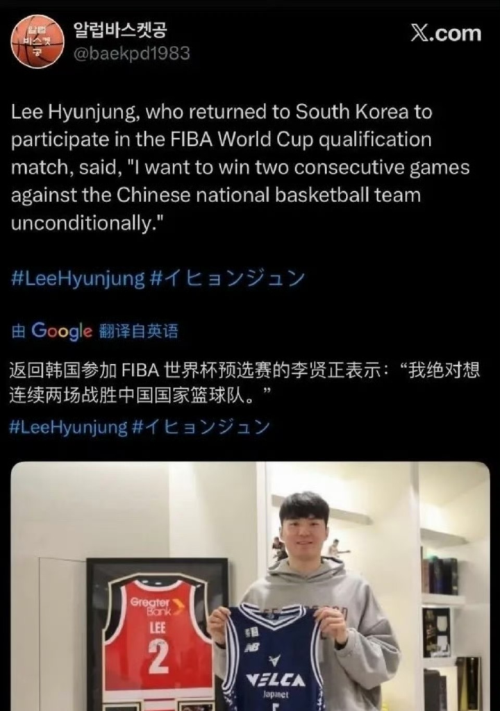 韩国男篮国家队一哥李贤重,在接受记者采访时表示,他想连续两场战胜中国男篮国家队。允许你多想一想,但你不能痴心妄想,现如今亚洲篮球,想两场比赛都稳稳拿下中国男篮的,可能只有全主力的澳大利亚。李贤重被中国男篮打哭两次了,这要是再来一次,那可就三三不断了,未来中国男篮可能会成为他的心魔。