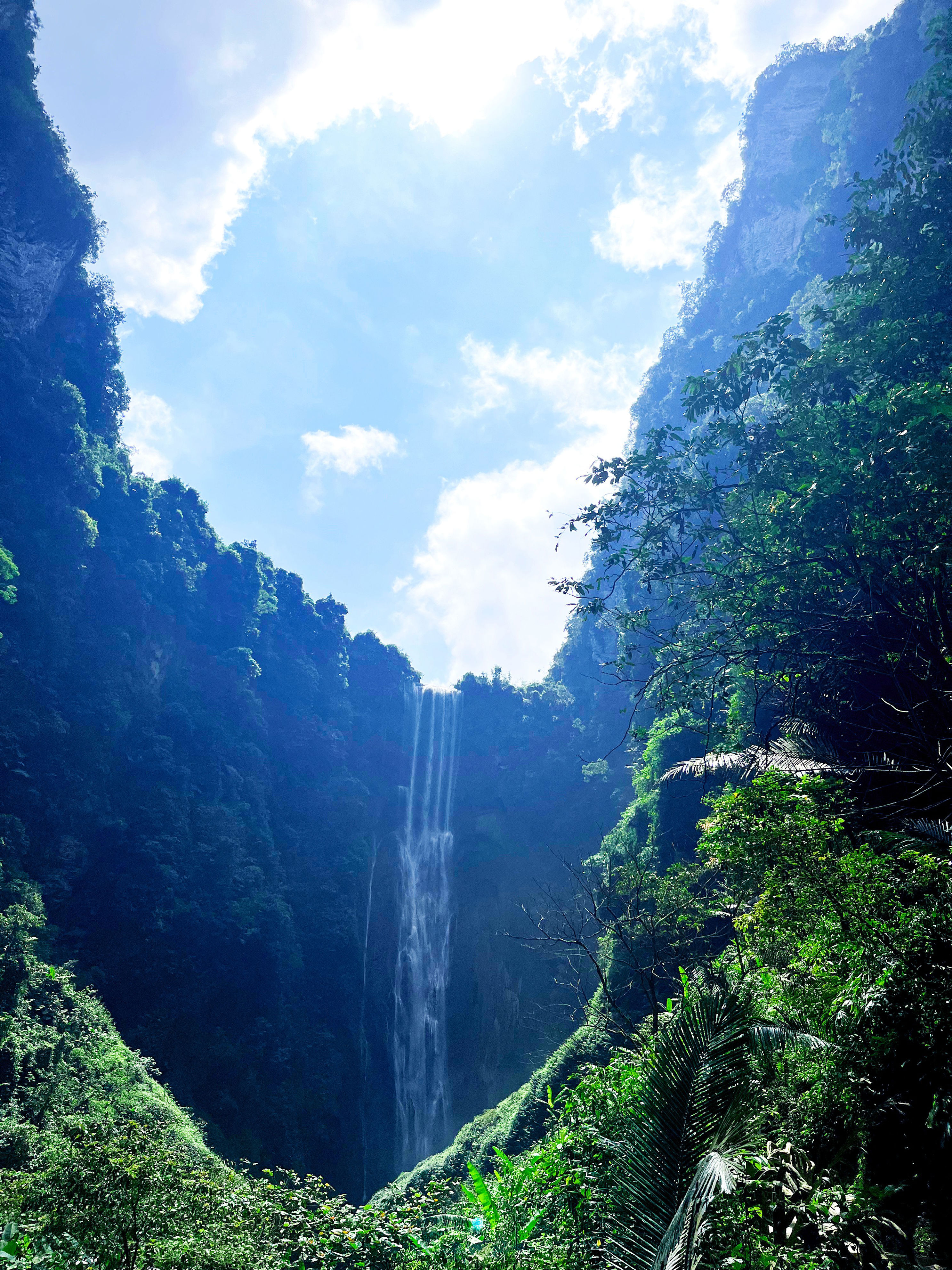 通灵大峡谷通灵大峡谷,是罕见的天堑,宛如地球上一道美丽的伤痕。峡谷内植被茂盛,古树盘根错节,郁郁葱葱,也被誉为中国最绿的峡谷。峡谷四周悬崖峻峭,瀑布飞泻,清澈的溪流和苍翠的植被遍布其中,每一次呼吸都是清新空气,仿佛置身森林氧吧。